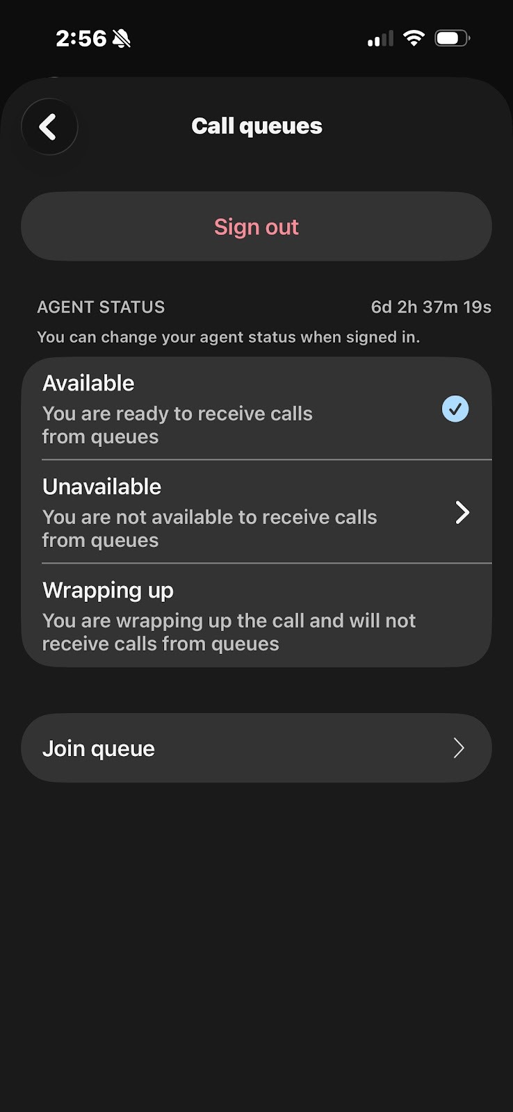 Note: Your supervisor determines which queues you can join or unjoin. If a toggle grayed out, you can't make a change for that queue.