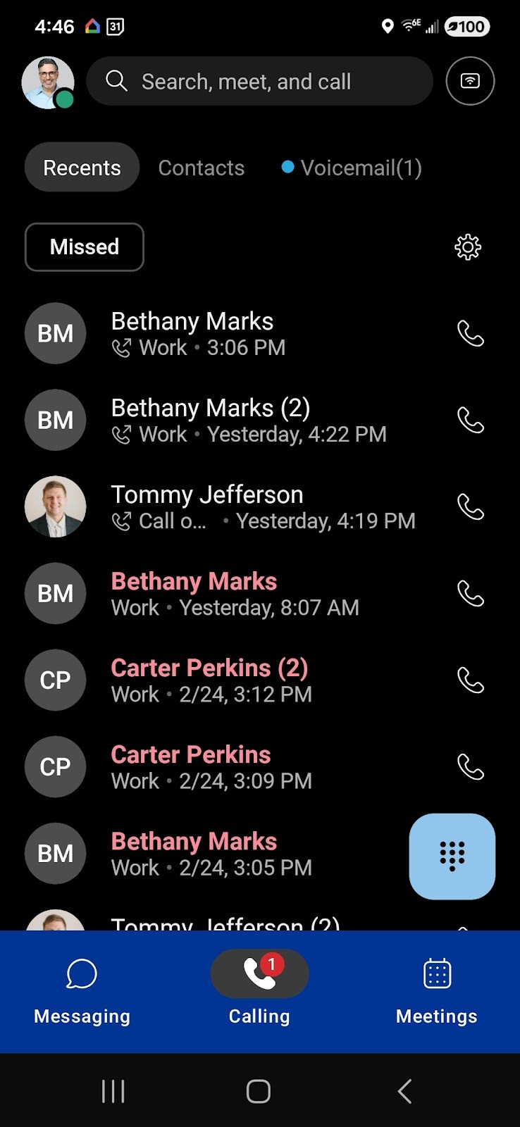 You can also place a voice or video call by tapping on the information (i) icon of the previously made call in the Calling tab under Recents or in the Missed Calls page.